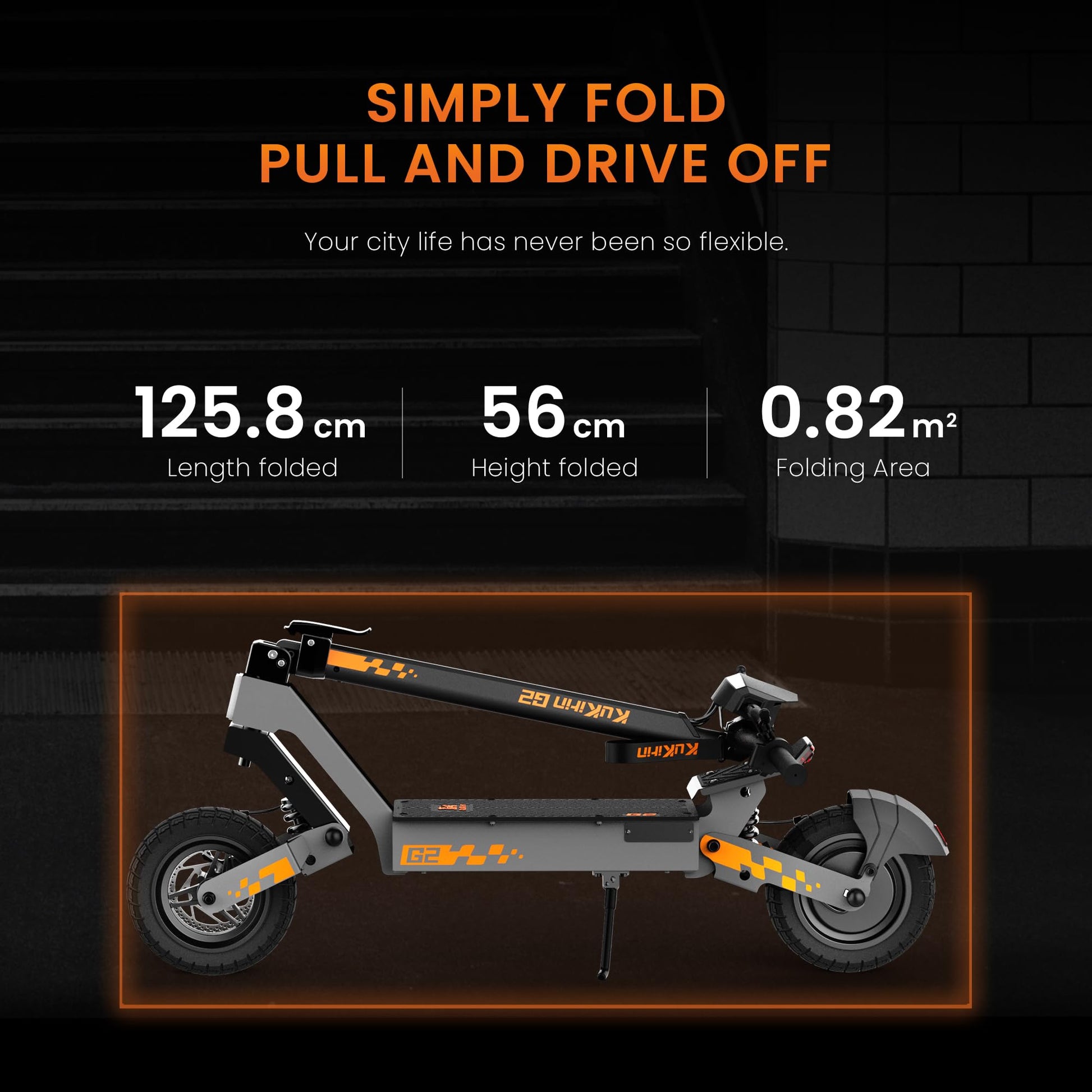 KuKirin G2 Electric scooter - 1200W 45KM/H Strong Motor Drive, 48V 15.6Ah Battery, Up to 55 km Range E Scooter, Dual Suspension, 10 Inch Pneumatic Tyres, LCD Display, IPX4, 3 Riding Modes, Foldable - For Everyday & Leisure